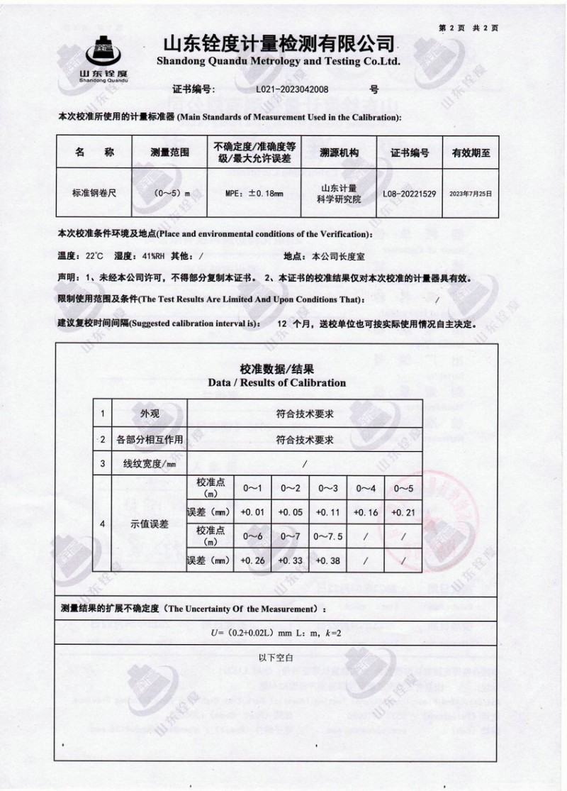 檢測儀器報告證書:鋼卷尺長度堅定報告